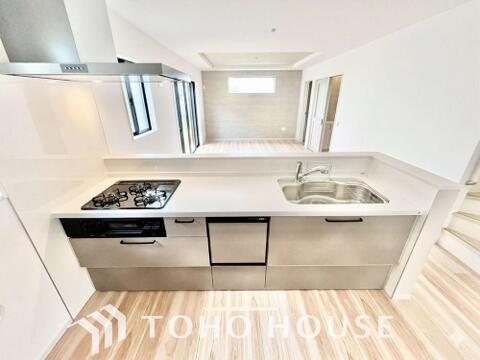 夫婦そろってキッチンに立っても調理がしやすく余裕の広さ。家事をしながら会話も弾みます。