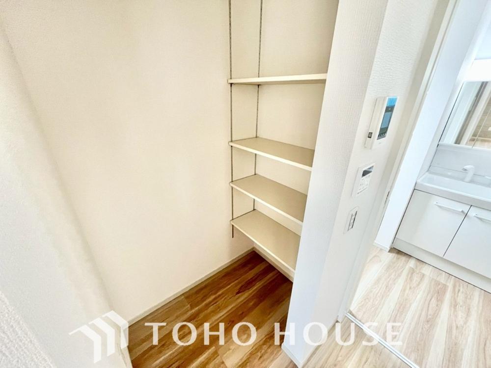 忙しい共働き世帯など、食品の買い置きや日用品のストックに大変便利なパントリー収納が備わってます。