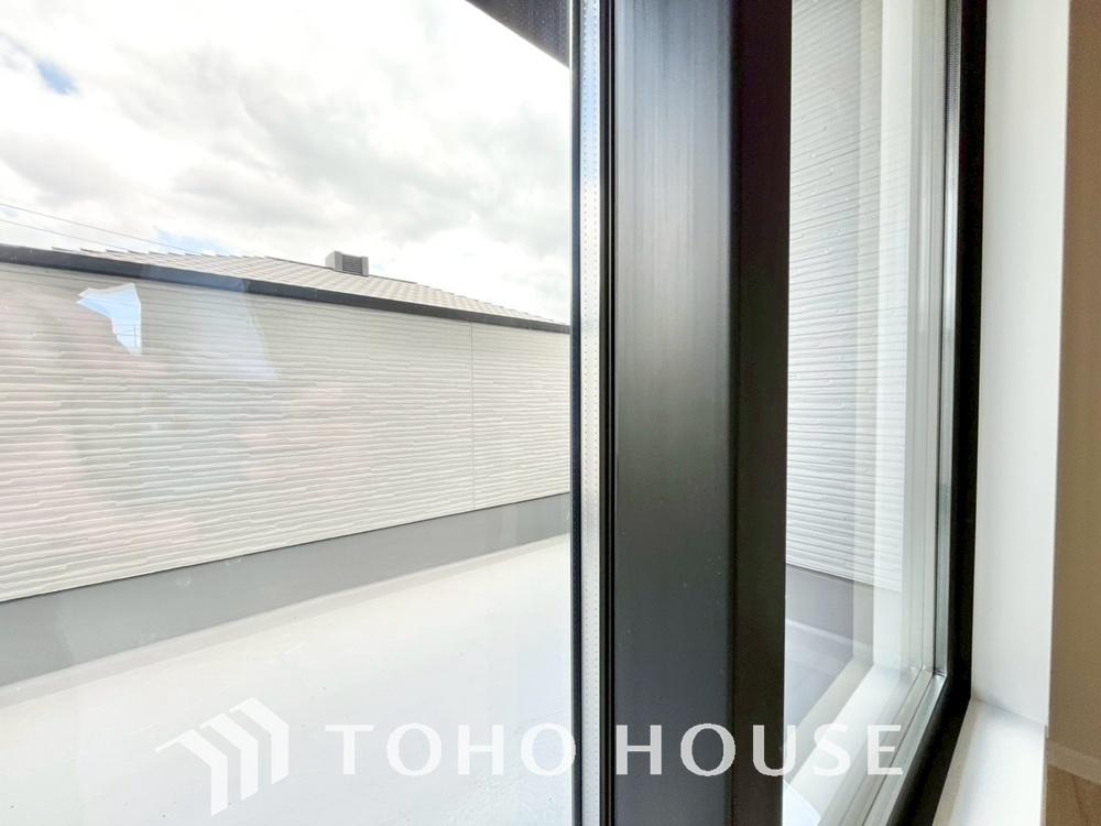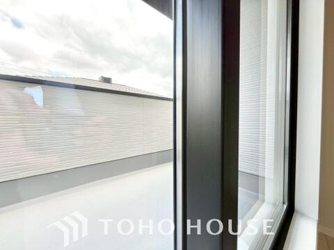 二層のガラスの間に空気層や特殊ガス層を作ることで断熱性能や結露防止効果を高めたサッシを装備してます。