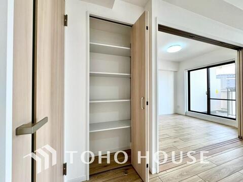 建物内部の収納には拘りました。共有部分に設けた収納。お荷物が多い方にも安心です。