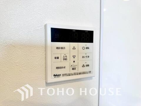 お風呂場と台所に操作リモコンがあり、キッチン近くにある給湯リモコンは、お料理の最中でもリビングで寛いでいるなかでもボタン一つで簡単に沸かせて便利ですね。