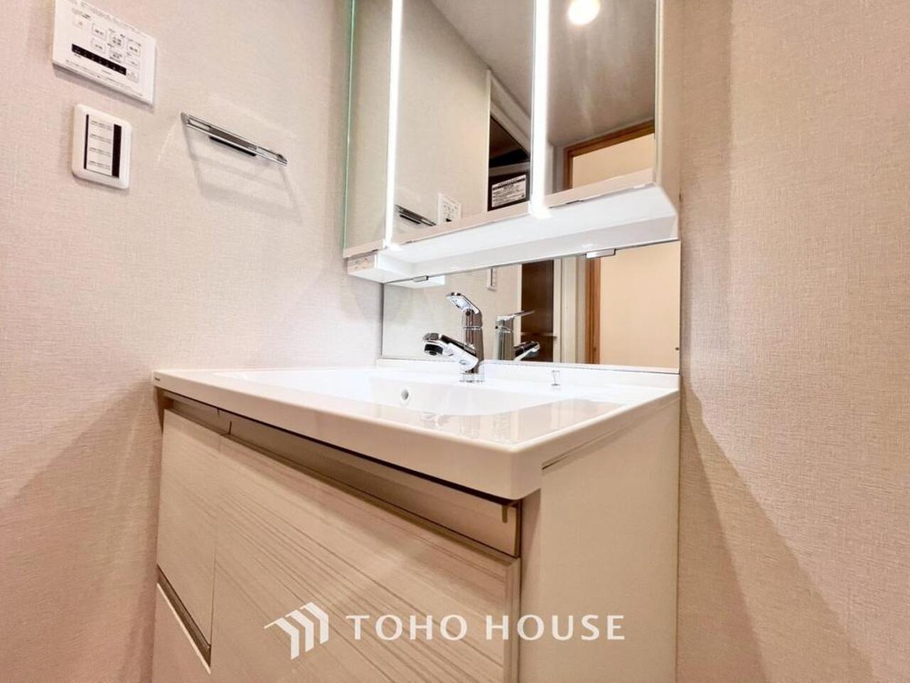手で洗いたい大切な服など、広く使えると助かる洗面台は汚れの付きにくい形状と素材で造られております。