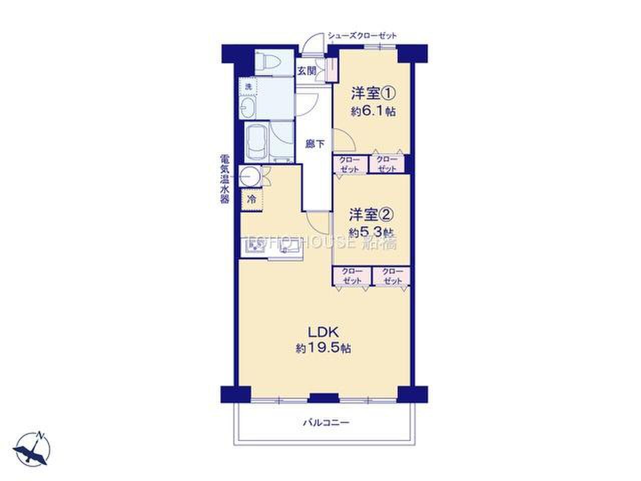 | 間取り | 2LDK | 専有面積 | 71.61m²(壁芯) |