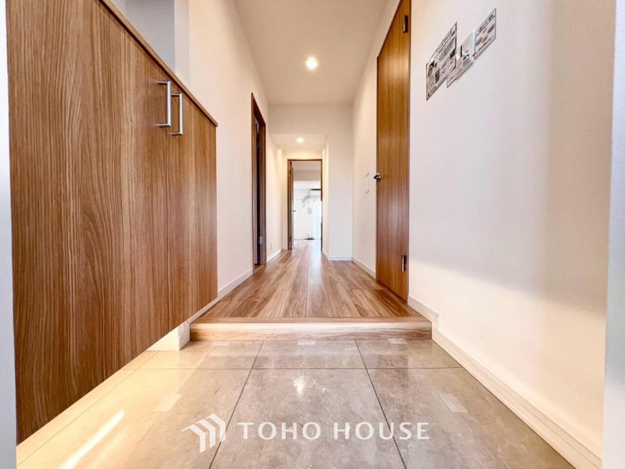 誰が来てもわかる様にモニター付きインターホンを設置。家事導線を考慮した個所に設置し、防犯性と利便性に優れ快適と安らぎを合わせた優しい設計。