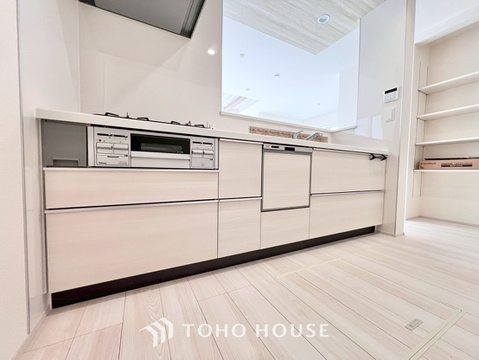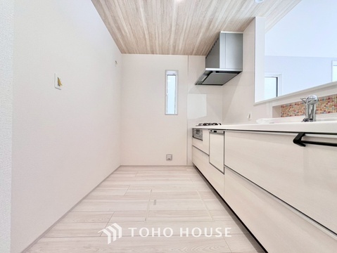 大型の冷蔵庫も配置できる広々としたキッチンスペースでお料理や家事をスムーズに進めることができます。