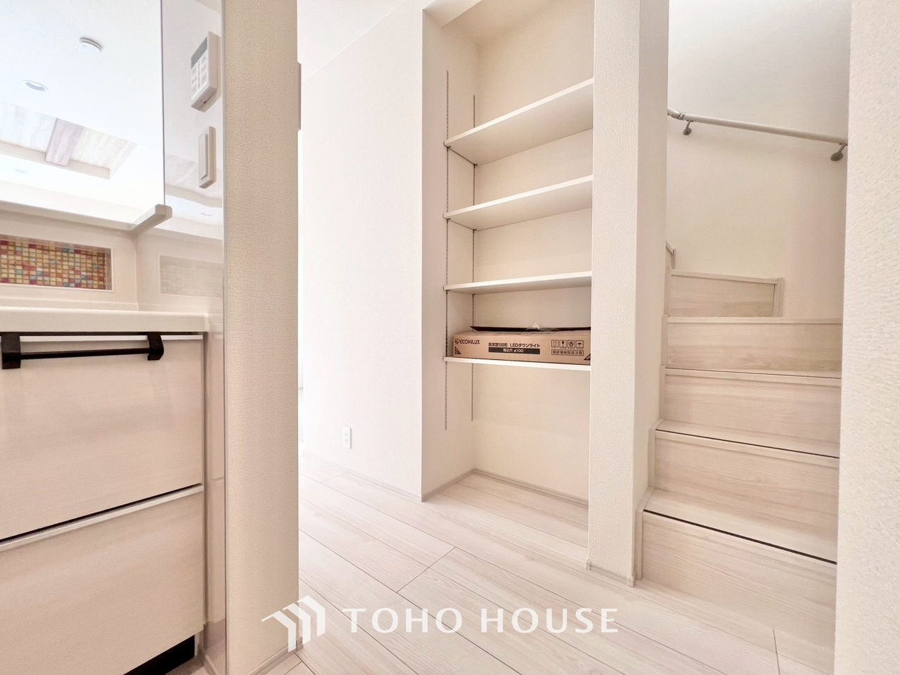 収納もさる事ながら、朝の慌ただしい時間もホテルライクなスペースで余裕とゆとりを感じて頂けます。