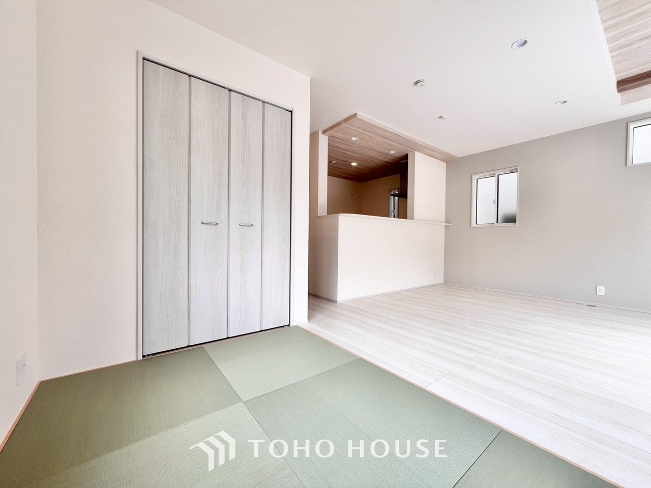 広々した開放感あるリビングの中にある癒しの和空間。家族団らんの場に和のテイストが自然にマッチ。