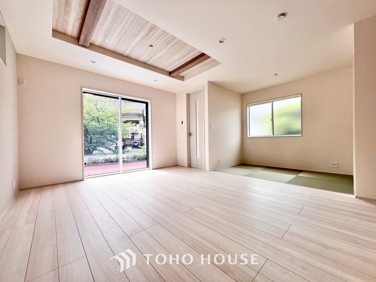 清潔感あるホワイトの壁紙と温もり溢れるカラーの床材が見事に調和した本邸宅。