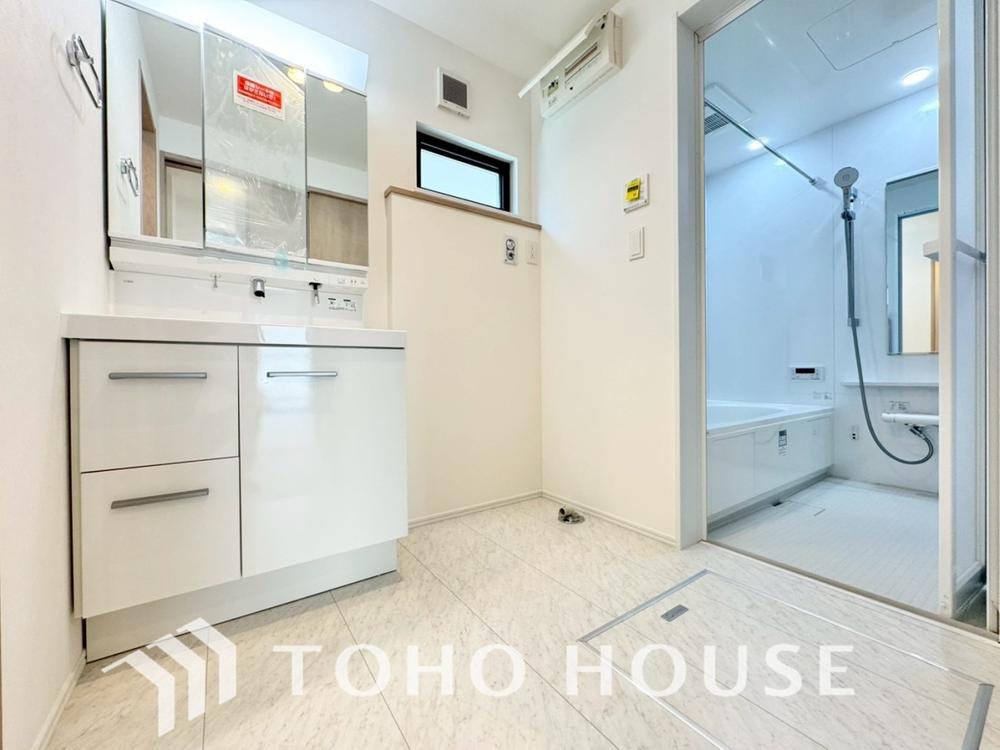身だしなみのチェックがしやすい大きな鏡、下には収納がたっぷり。スッキリとした空間を演出いたします。