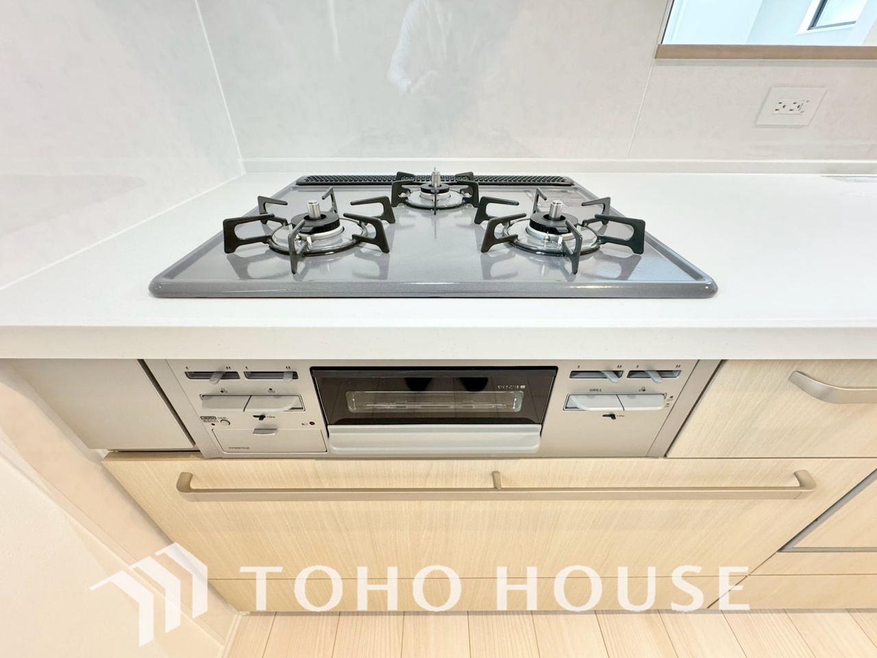 3口コンロは一度に複数のお料理を作ることができるメリットがあります。毎日のキッチンタイムを効率よく。