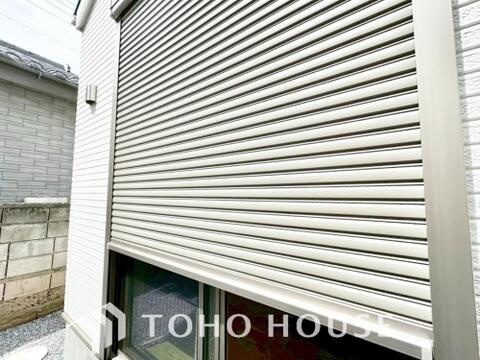 戸建にも防犯機能シャッターを完備しております。寒い冬でも中から開閉が可能ですのでラクラクな所も便利です。