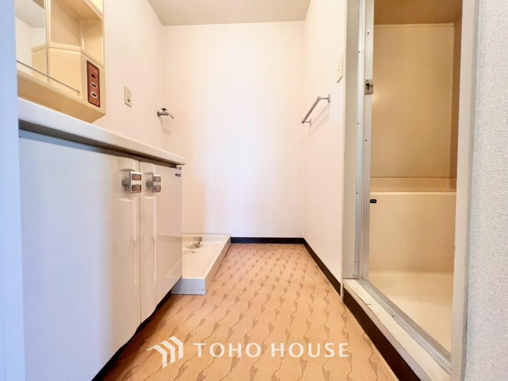 お家の中でも特にプライベートスペースとなる洗面所は、洗濯場所と浴室を同じ空間でまとめております。