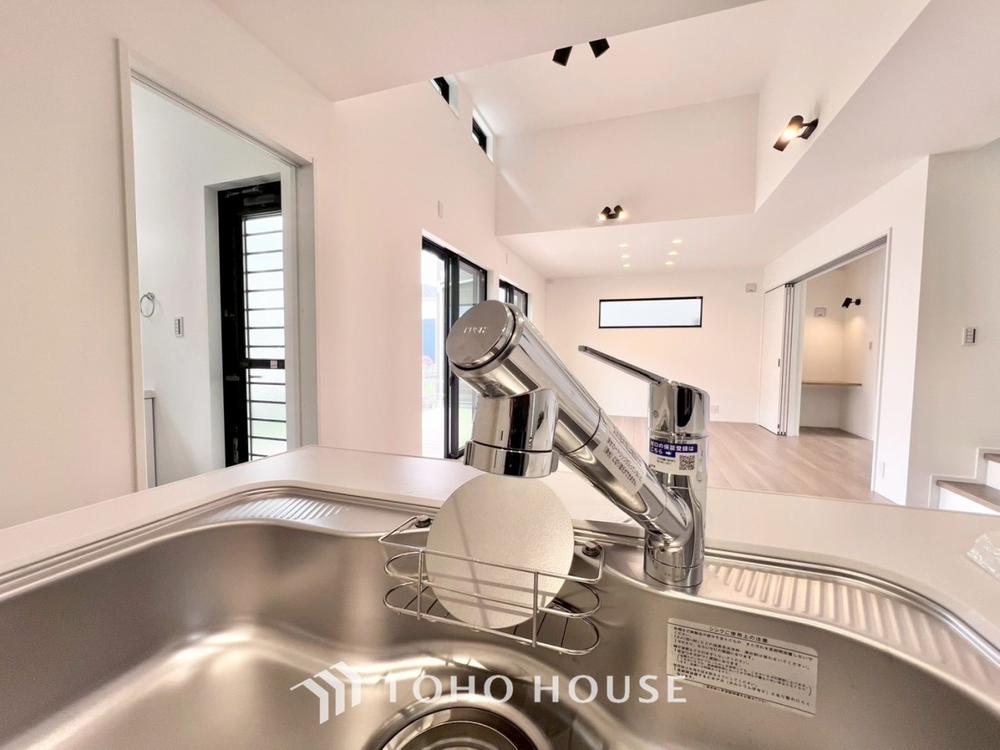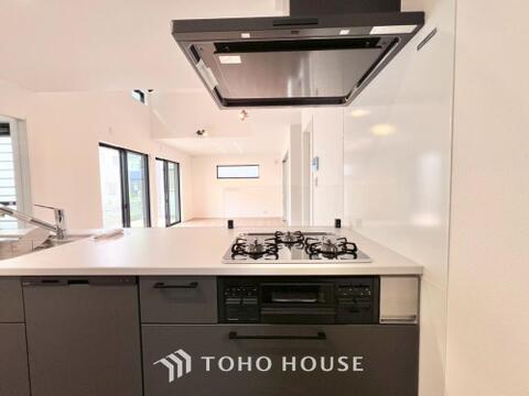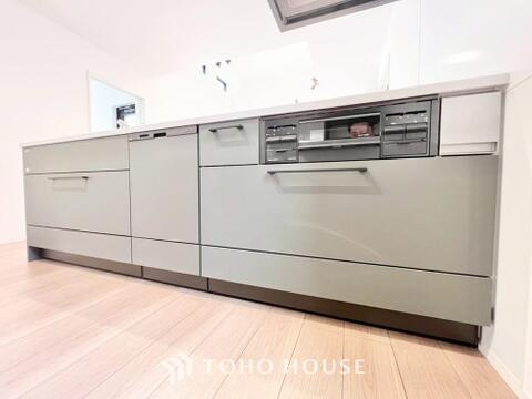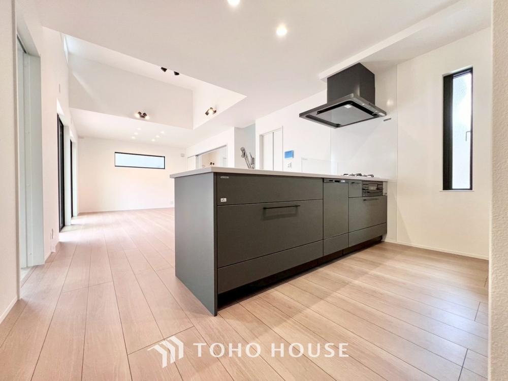 家族みんなでゆったりと調理や食事の準備ができる十分な広さを確保した、快適なキッチンスペース。