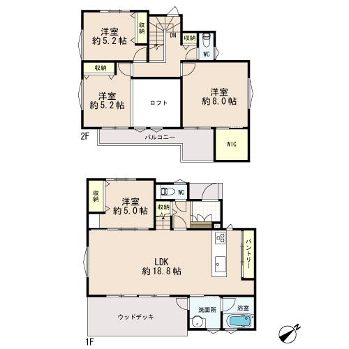 | 設備 | 都市ガス/東京電力/公営水道/下水排水/インターホンTV/フローリング/収納/システムキッチン/対面キッチン/温水洗浄便座/浴室換気乾燥機/床下収納/ウォークインクローゼット/駐車場2台/食器洗浄乾燥機/太陽光発電/フラット35S/浄水器/トイレ2ヶ所/ウッドデッキ/バス1坪以上/フラット35適合S/フラット35・S適合/全居室フローリング/LDK18畳以上/全居室収納/パントリー/小学校徒歩10分以内/スーパー徒歩10分以内/即入居可/総合病院10分以内 | ||